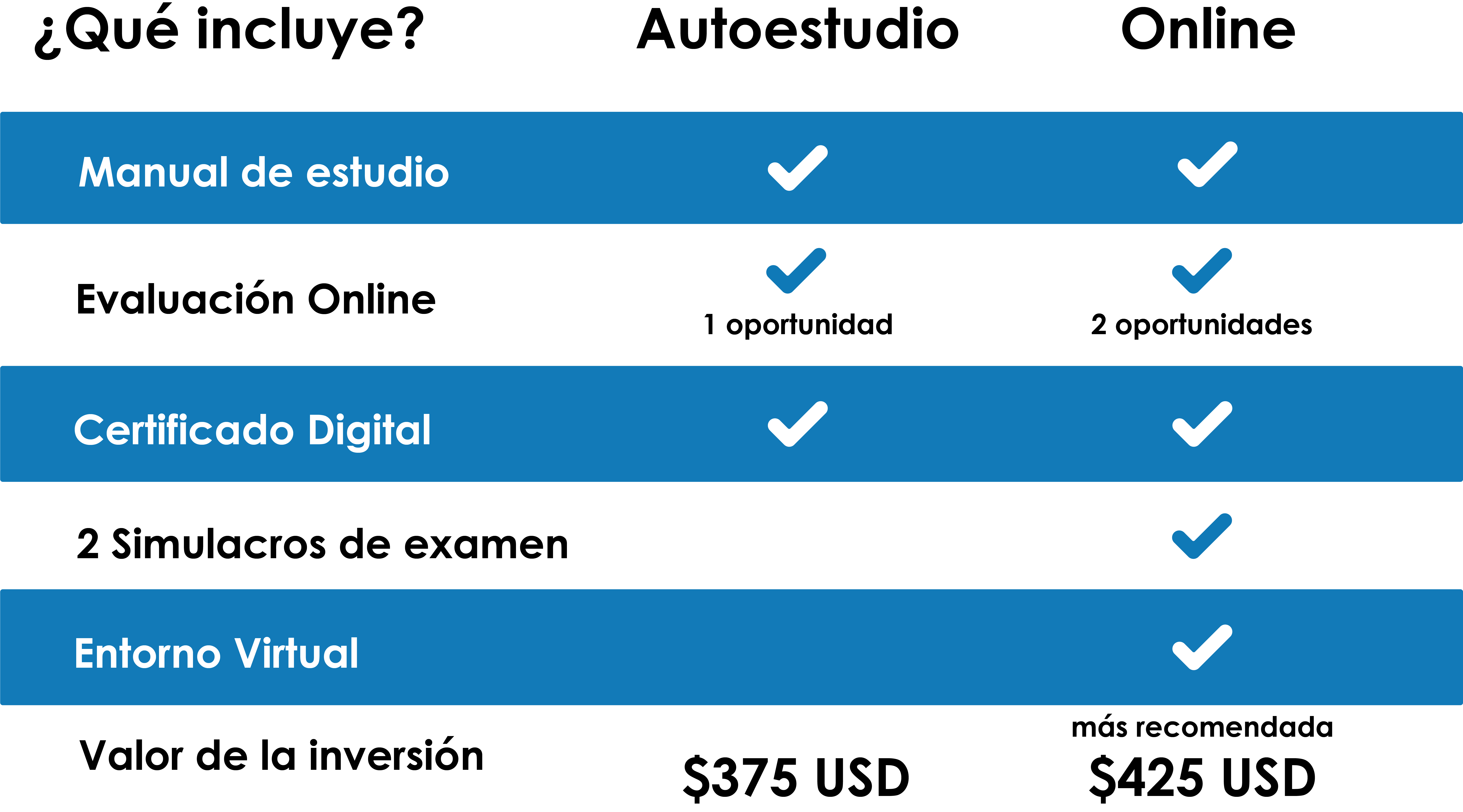 • Modalidad Autoestudio: Si no apruebas en tu primera oportunidad, debes adquirir un nuevo