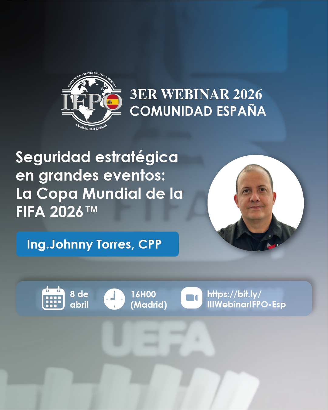 📢 Este 8 de abril te invitamos al III Webinar 2026 – Comunidad IFPO España 🇪🇸 con un tema clave: Seguridad estratégica en grandes eventos: La Copa Mundial de la FIFA 2026. ⚽ La Copa Mundial de la FIFA 2026 —el evento deportivo más grande de la historia— plantea un desafío estratégico sin precedentes en seguridad. En […]