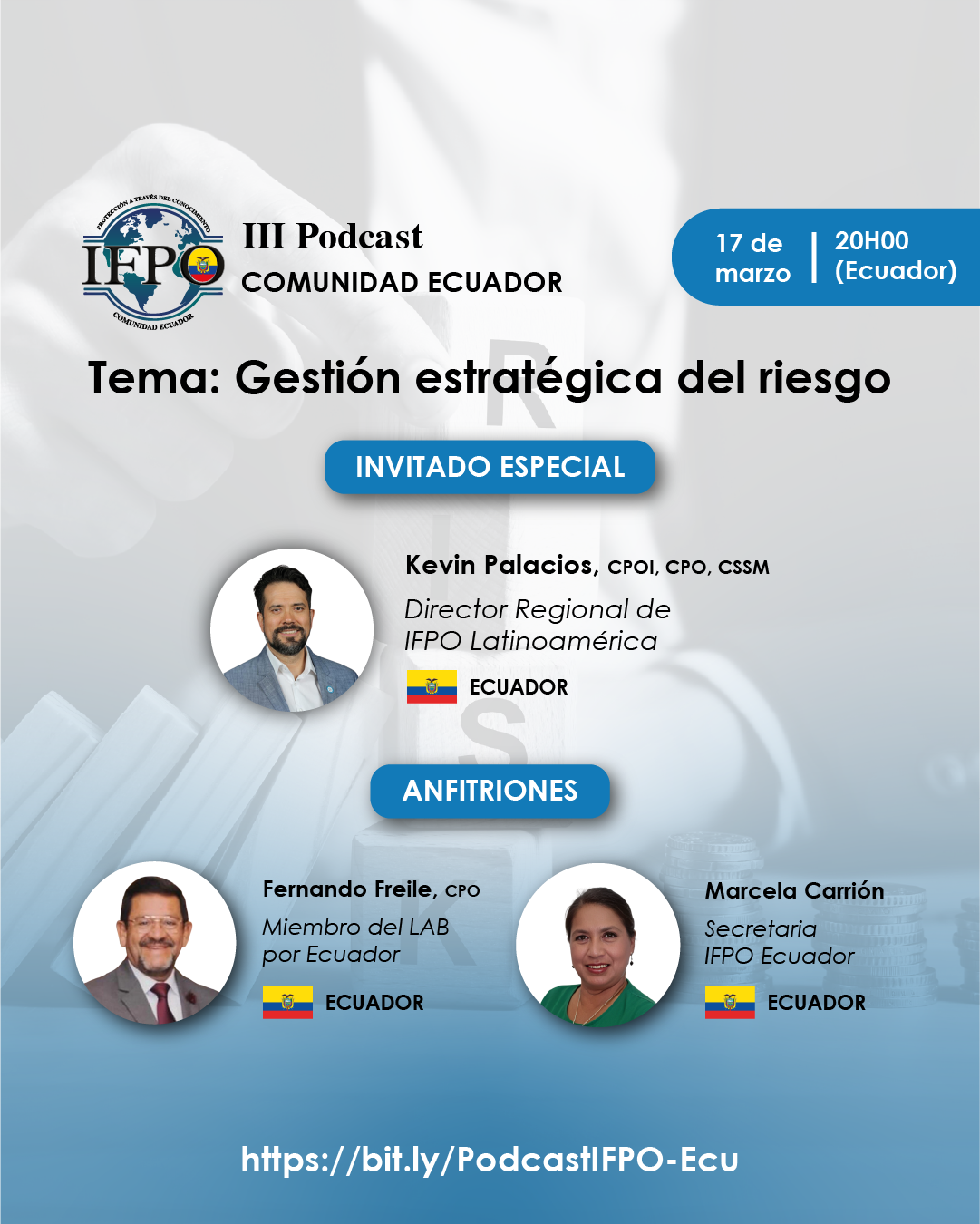 ¡Este 17 de marzo llega el III Podcast de la Comunidad IFPO Ecuador: Gestión Estratégica del Riesgo! Un espacio clave para profesionales de la seguridad que buscan fortalecer la toma […]