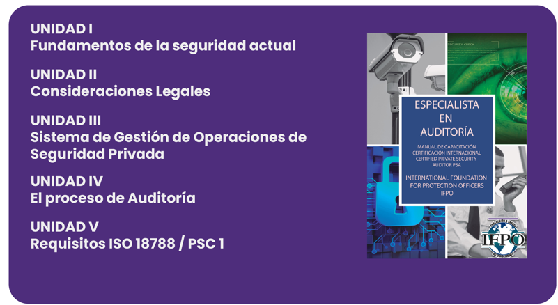 La Certificación Internacional PSA© Especialista en Auditoría de Seguridad Privada capacita a un profesional de seguridad para desempeñarse como auditor y evaluar sistemas de gestión de seguridad privada. Los titulares de la certificación PSA son Oficiales de Protección Certificados que han demostrado un compromiso profesional significativo para avanzar en roles de auditoría, inspección, supervisión o fiscalización en el ámbito de la seguridad.